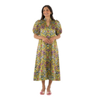 The Hampton Dress in Dutch Bee features a mandarin-style collar, elastic puff sleeves, and a softly shaped A-line silhouette that offers an easy, flowing fit. Thoughtfully designed with side pockets for added function, it balances comfort with considered detail. Created in collaboration with artist Jessica O’Neill, the Dutch Bee print translates hand-painted florals and bees into a wearable design that feels expressive, playful, and distinctly art-driven.