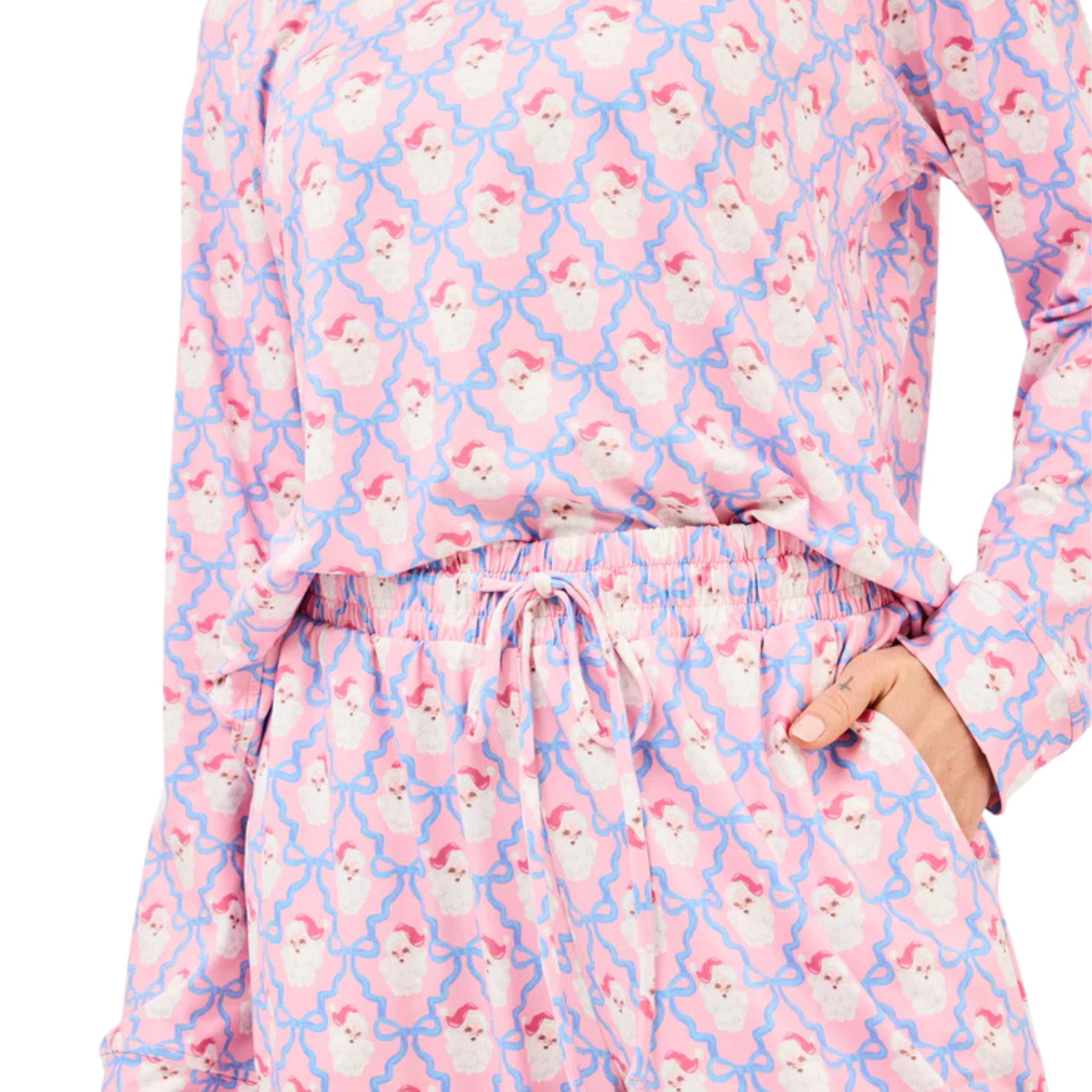 Introducing the Holiday Annie Pajama Set, where comfort meets festive charm. Perfect for sipping cocoa by the tree or enjoying Christmas morning in cozy style, this pajama set brings holiday cheer to every moment. Featuring a long-sleeve top with a classic crew neckline and straight-leg pants with an adjustable drawstring, our Annie Pajama Set combines classic holiday style with all-day comfort.