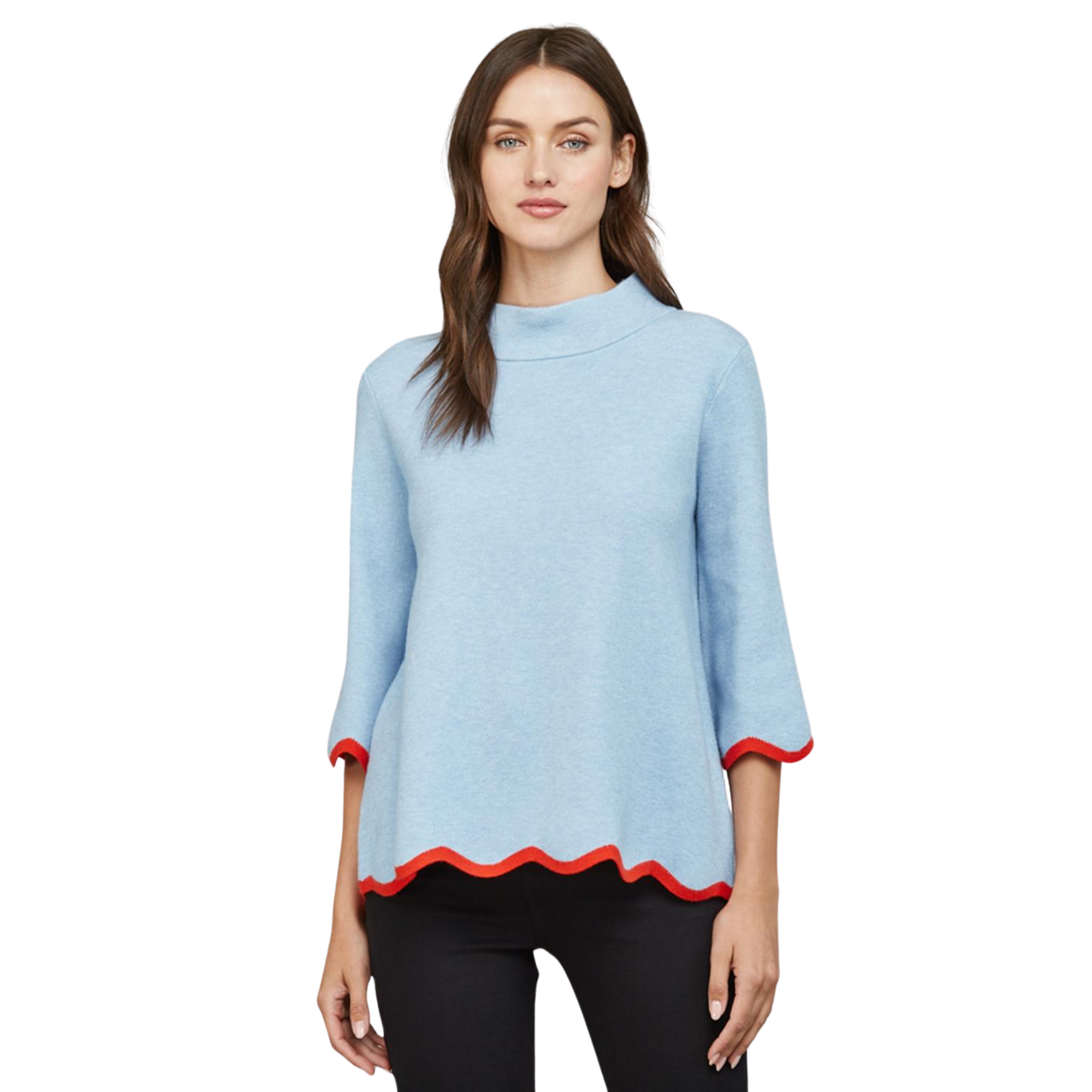 Half Sleeve Blouse in Soft Blue Orange Red