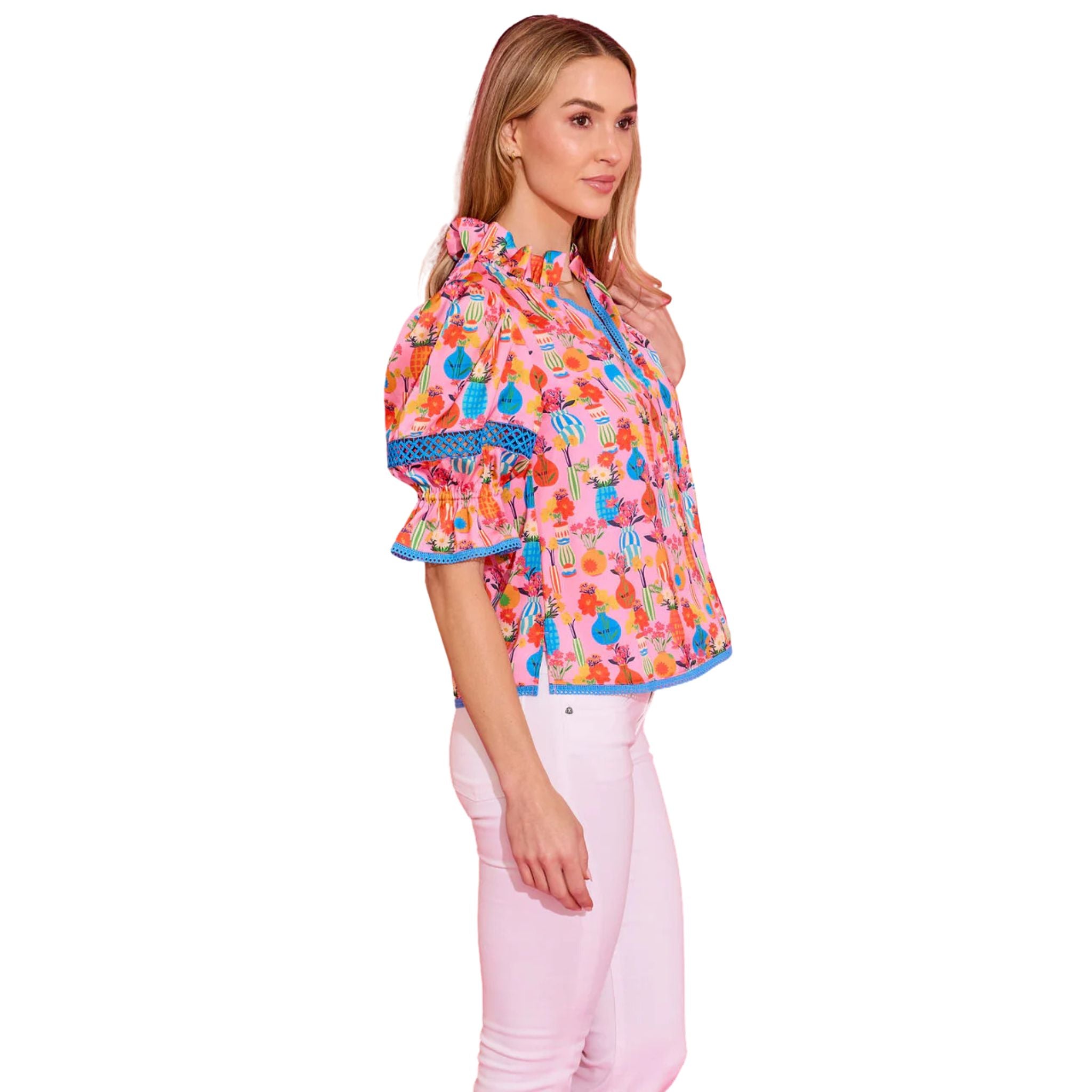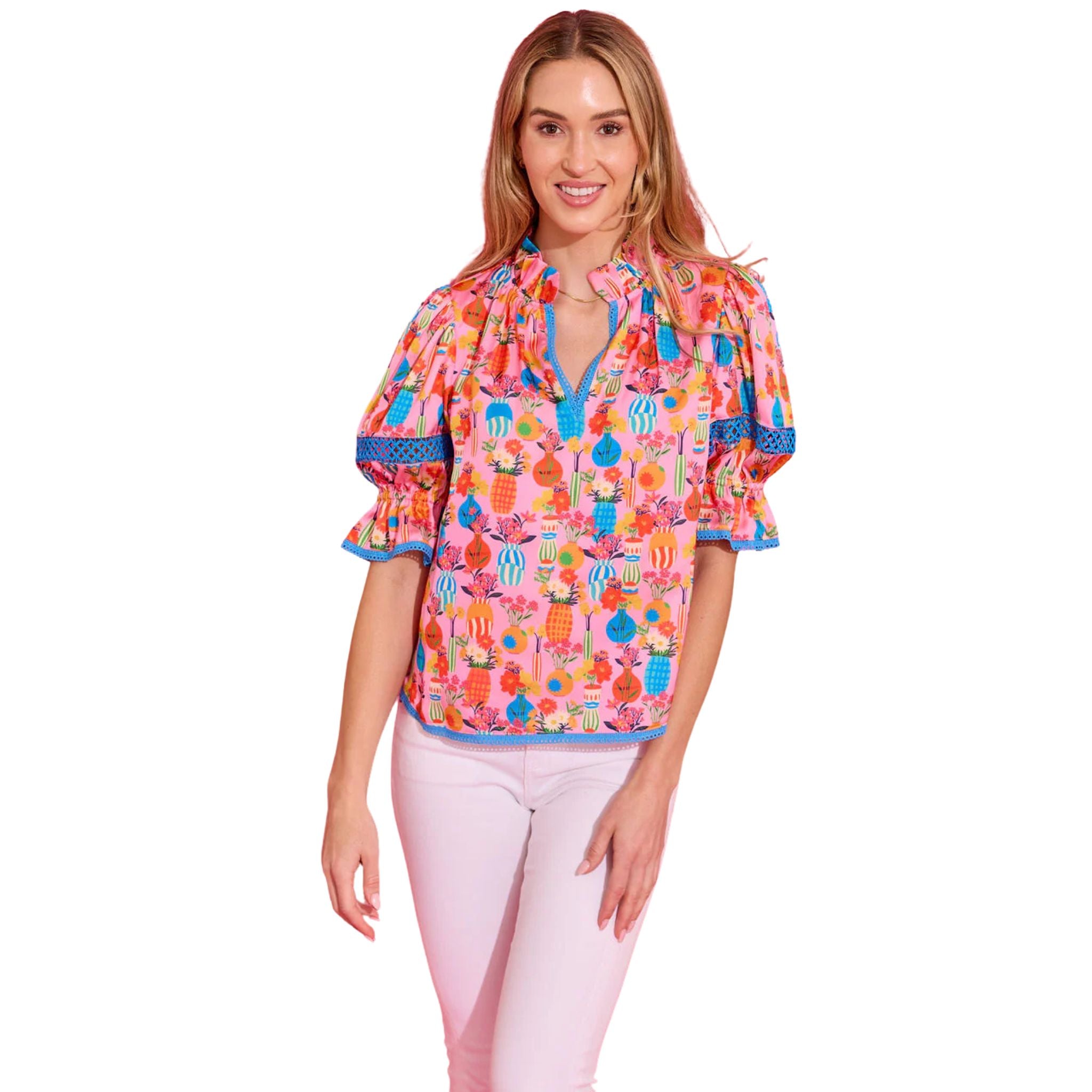 Look your chicest in the Lottie Top. It's perfect for a busy day, with its fun detailing and print. So don't just blend in - show off! The Lottie top checks all the boxes. She is the perfect spring top with a classic v-neck and puff sleeves.